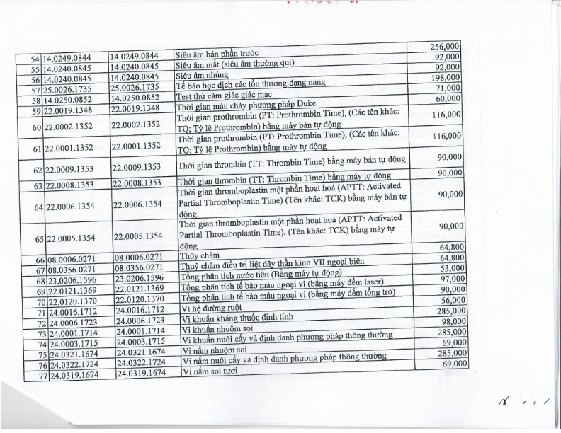Bảng giá dịch vụ khám chữa bệnh theo yêu cầu
