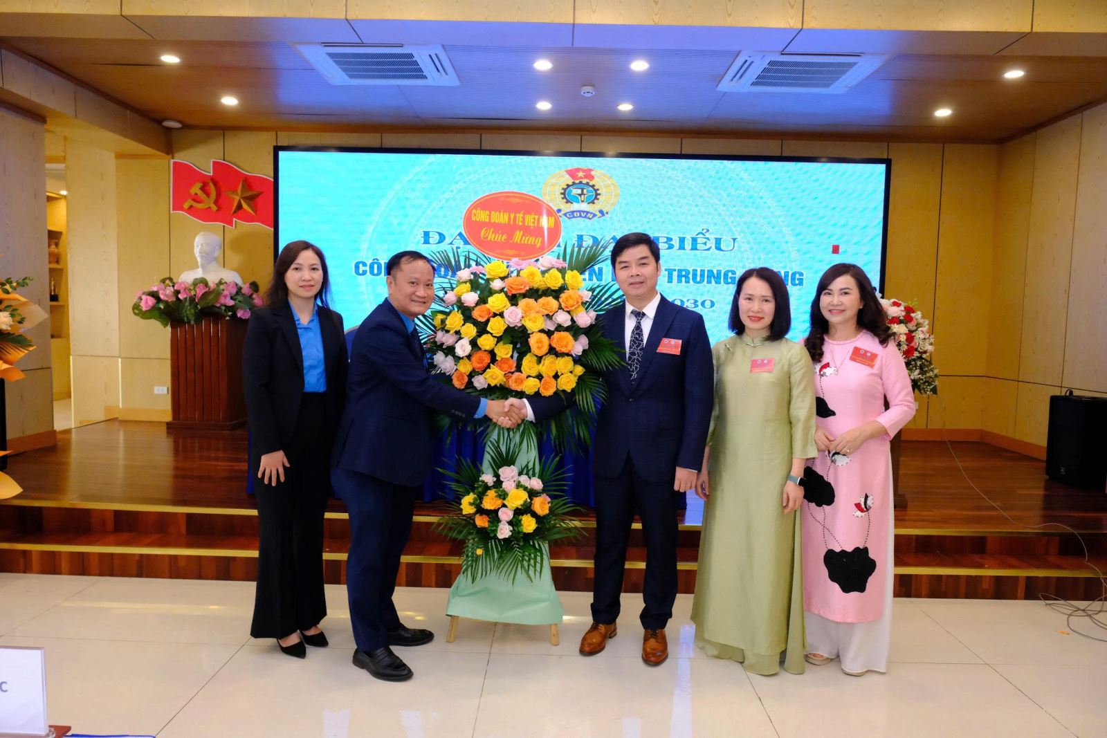 Đại hội vinh dự đón tiếp các đồng chí lãnh đạo Công đoàn Y tế Việt Nam: Ông Phan Thành Sơn – Phó Trưởng ban Công tác Công đoàn, Kế toán trưởng Công đoàn Y tế Việt Nam và Bà Nguyễn Thị Mai Phương – Chuyên viên Ban Công tác Công đoàn.