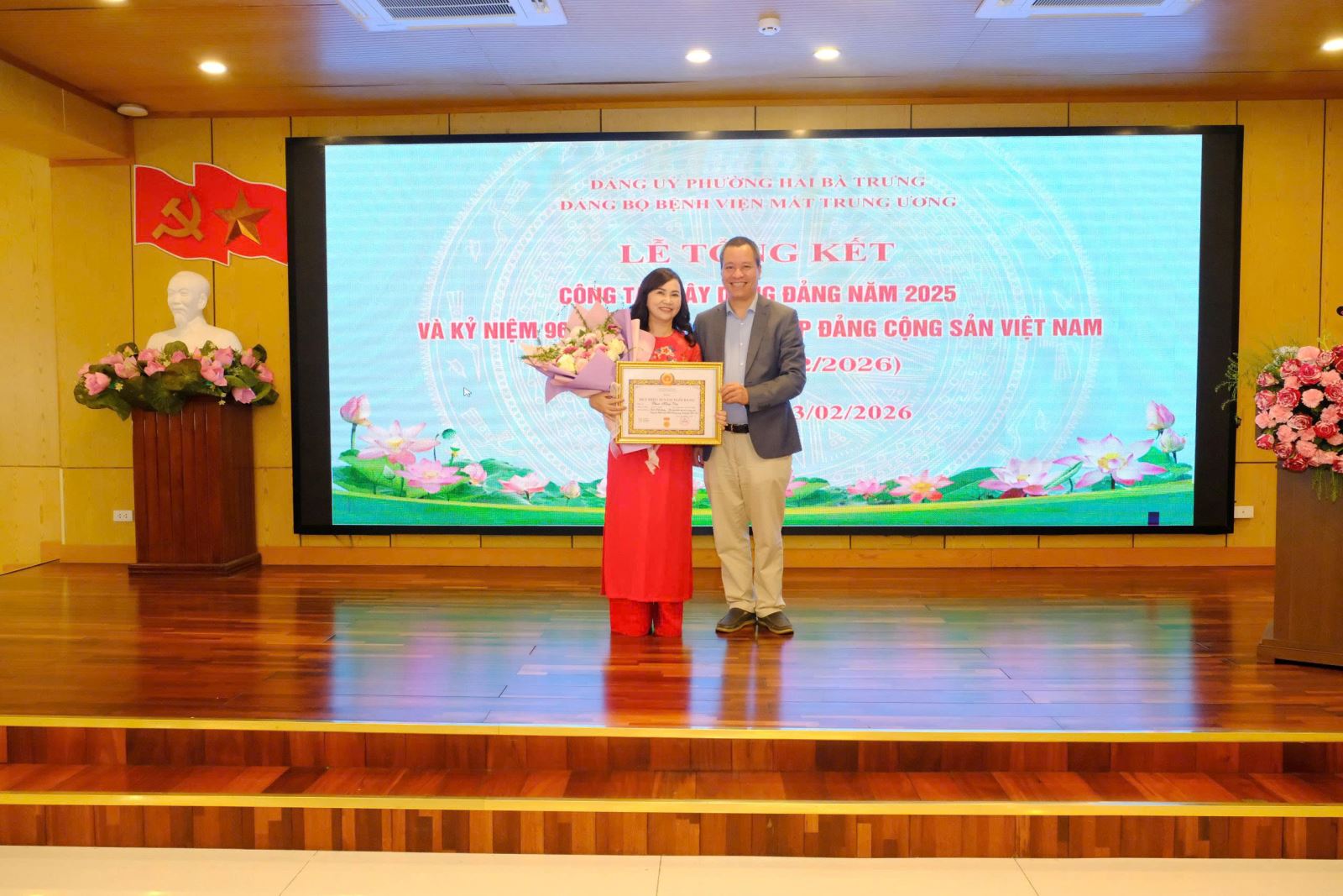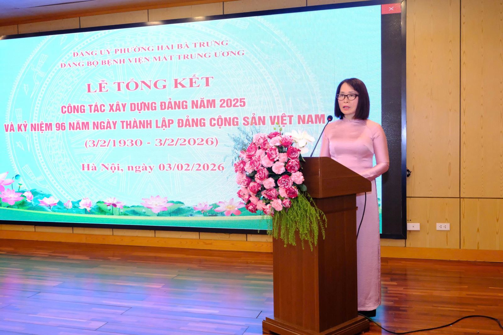 Trong không khí phấn khởi sau thành công của Đại hội đại biểu toàn quốc lần thứ XIV của Đảng, hướng tới kỷ niệm 96 năm Ngày thành lập Đảng Cộng sản Việt Nam (03/02/1930 – 03/02/2026) và những ngày đầu năm mới 2026, thực hiện chương trình công tác năm, chiều ngày 03/02/2026, Bệnh viện Mắt Trung ương đã tổ chức Hội nghị tổng kết công tác Đảng năm 2025 và kỷ niệm 96 năm Ngày thành lập Đảng. Hội nghị nhằm đánh giá kết quả lãnh đạo, chỉ đạo thực hiện nhiệm vụ chính trị và công tác xây dựng Đảng trong năm qua, đồng thời đề ra phương hướng, nhiệm vụ, giải pháp trọng tâm cho năm 2026.