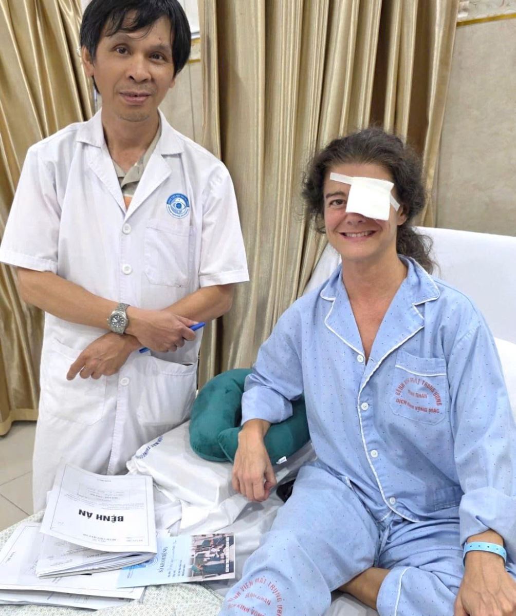 Giữa tháng 9/2025, bà Mirta Gayo Guerrero Eduardo Ortigueira Gómez, quốc tịch Đức, đang du lịch tại Việt Nam thì xuất hiện tình trạng giảm thị lực đột ngột mắt trái. Bệnh nhân đã tới khám tại Bệnh viện Mắt Trung ương trong tình trạng hoang mang, lo lắng. Sau khi thăm khám, hội chẩn và đánh giá các kết quả chẩn đoán hình ảnh, bệnh nhân được xác định xuất huyết dịch kính mắt trái, nghi có rách võng mạc và được chỉ định nhập viện điều trị ngay. BS.ThS Nguyễn Cảnh Thắng – Khoa Dịch kính Võng mạc là người trực tiếp điều trị ca bệnh này.