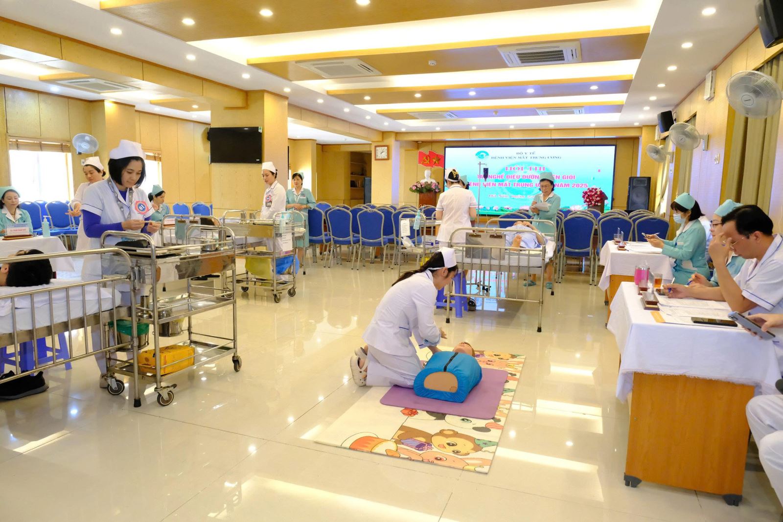 Ngày 22/12/2025, Bệnh viện Mắt Trung ương đã tổ vòng chung kết Hội thi “Tay nghề điều dưỡng viên giỏi” năm 2025 với sự tham dự 15 thí sinh là những điều dưỡng viên giỏi vượt qua các vòng xét chọn, sát hạch sơ khảo, đại diện cho các khoa, phòng lâm sàng, vượt qua hơn 200 điều dưỡng Bệnh viện. Đây là cuộc thi được tổ chức hàng năm nhằm đánh giá kỹ năng kiến thức, kỹ năng, quy trình kỹ thuật chuyên môn và giao tiếp ứng xử, xử lý các tình huống của các điều dưỡng, kỹ thuật viên Bệnh viện trong chăm sóc người bệnh.